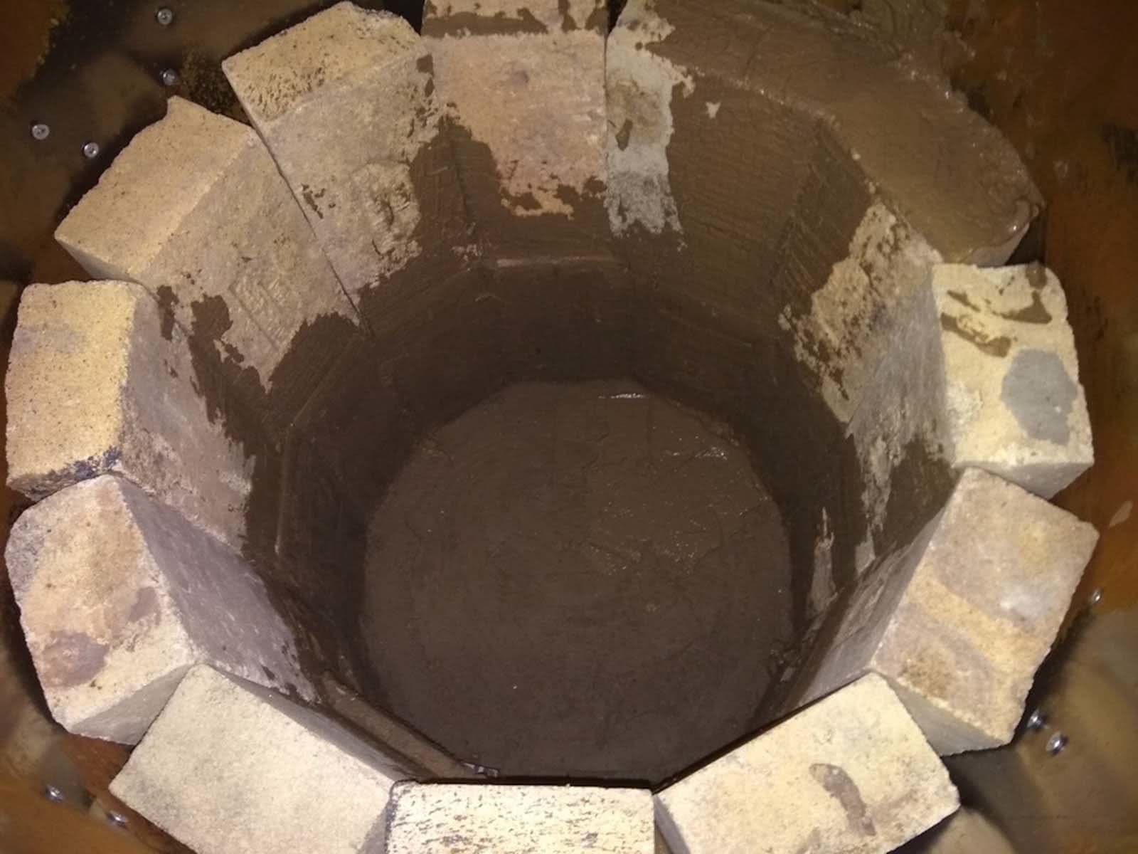 Для улучшения термоёмкости печи между основой и кирпичной оболочкой засыпают песок.