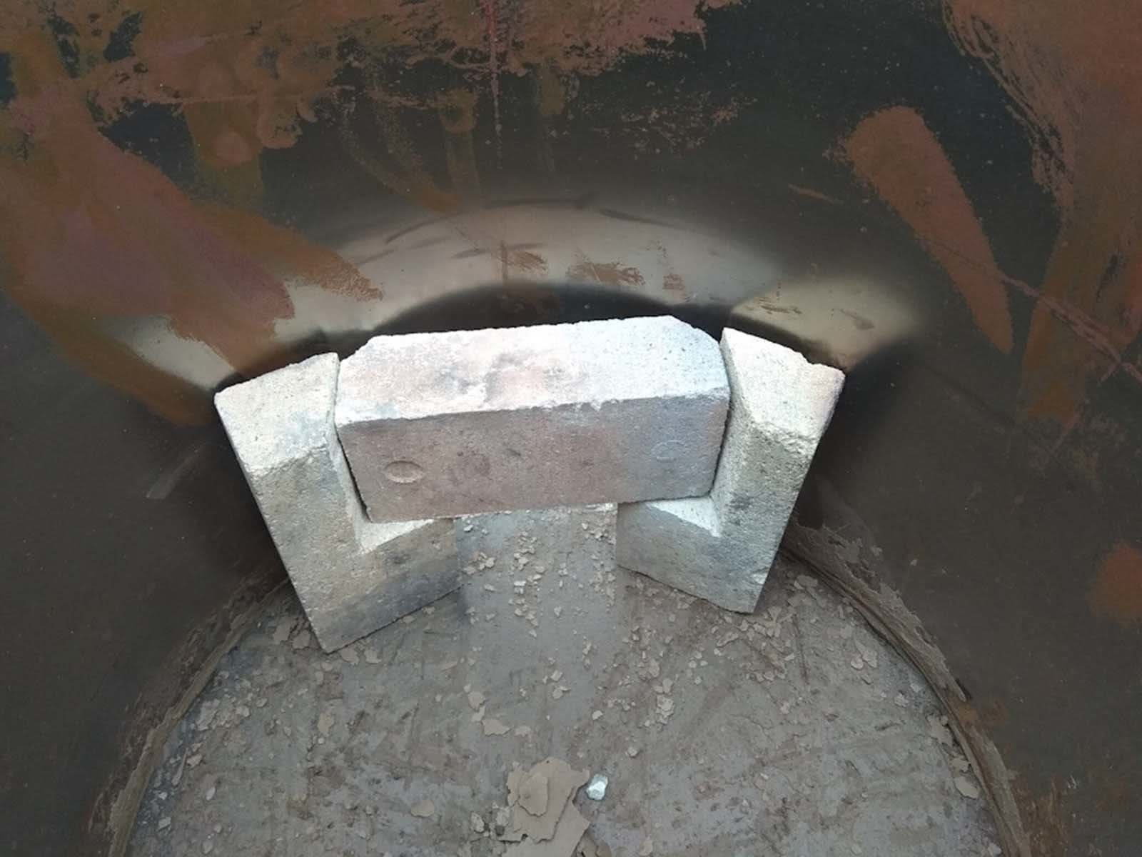 Фото 1. Внутри бочку обкладывают кирпичами, заранее положив колосник и сделав поддувало. Оставшиеся зазоры позже замазываются глиной.