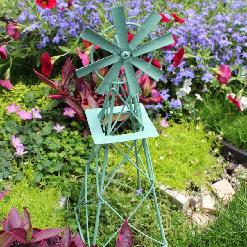 Декоративная мельница для сада, выполненная в металле, лучше смотрится, если ее выкрасить в яркий цвет, например, красный