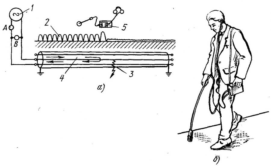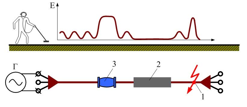 - Затем подаем напряжение и проверяем его наличие в месте надреза. Так, постепенно сужая зону поиска, вы определите место повреждения.