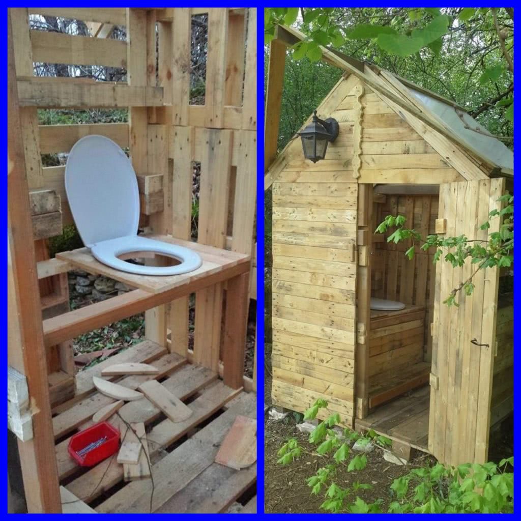 Туалет на даче можно построить из поддонов. Это отличный способ, ведь после строительства дома часто остаются ненужные поддоны. А их размеры как раз подходят для уборной – около 120х120 см.