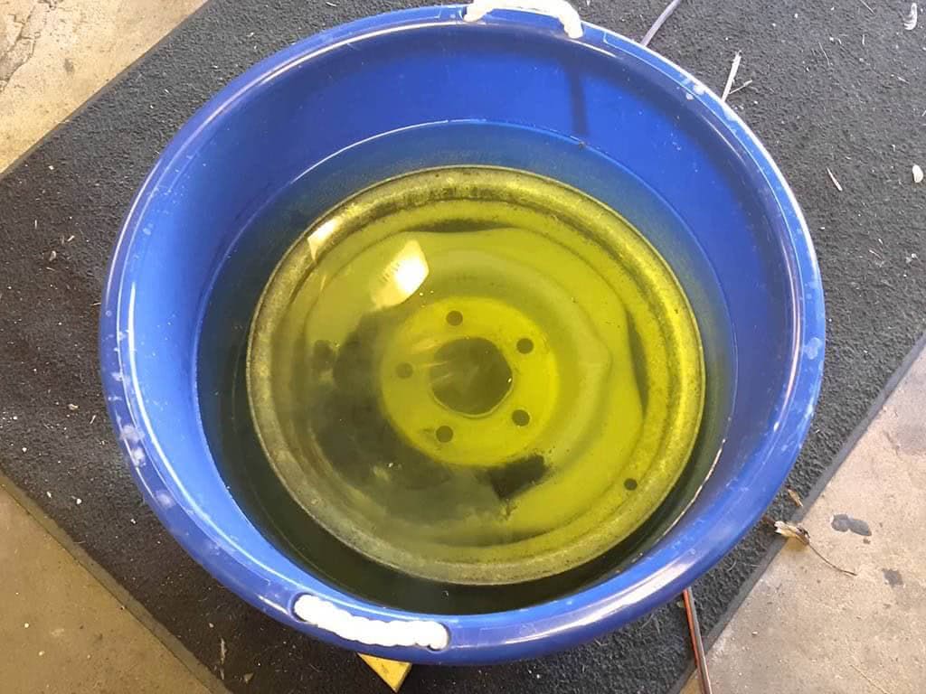 Перед тем как помещать заржавевшие детали в раствор, их следует обезжирить. Удаление ржавчины с помощью этого способа занимает около получаса.