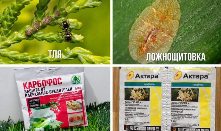 Ветки опрыскивать лучше всего препаратами «Энджио», «Мовенто» или «Протеус», прикорневую область почвы обрабатывают «Актарой». Эти препараты следует применять согласно инструкции.