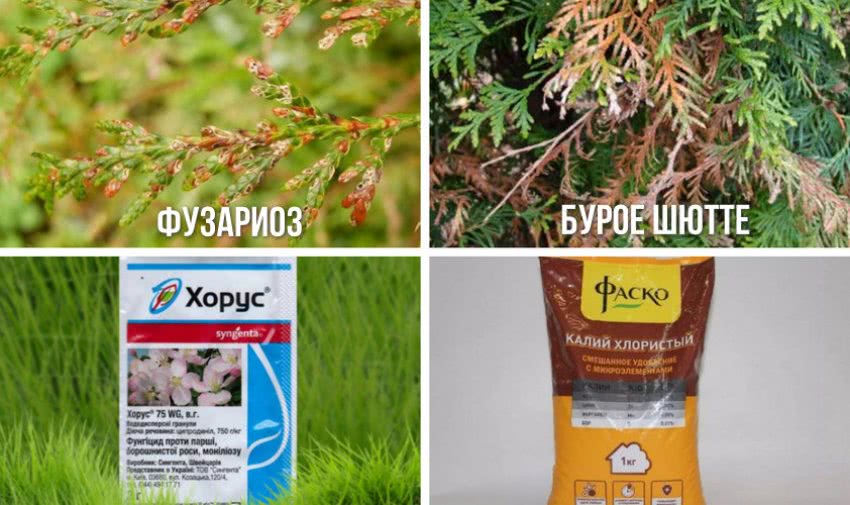 Чтобы предотвратить развитие этой болезни, важно своевременно проводить санитарную обрезку туи и раз в 2 месяца вносить 20–30 грамм калийных минеральных удобрений на 1 м² почвы вокруг растения. Для этой цели можно использовать такие вещества, как хлористый калий и сульфат калия