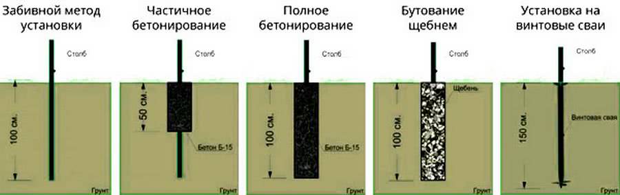 Метод их установки зависит от назначения и высоты самой ограды, а также от качества почвы.