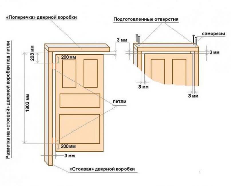 Чтобы коробка двери была собрана без нарушений, эту работу выполняют на специально подготовленном месте с ровной поверхностью. Во время этой работы наносят разметку и врезают петли.