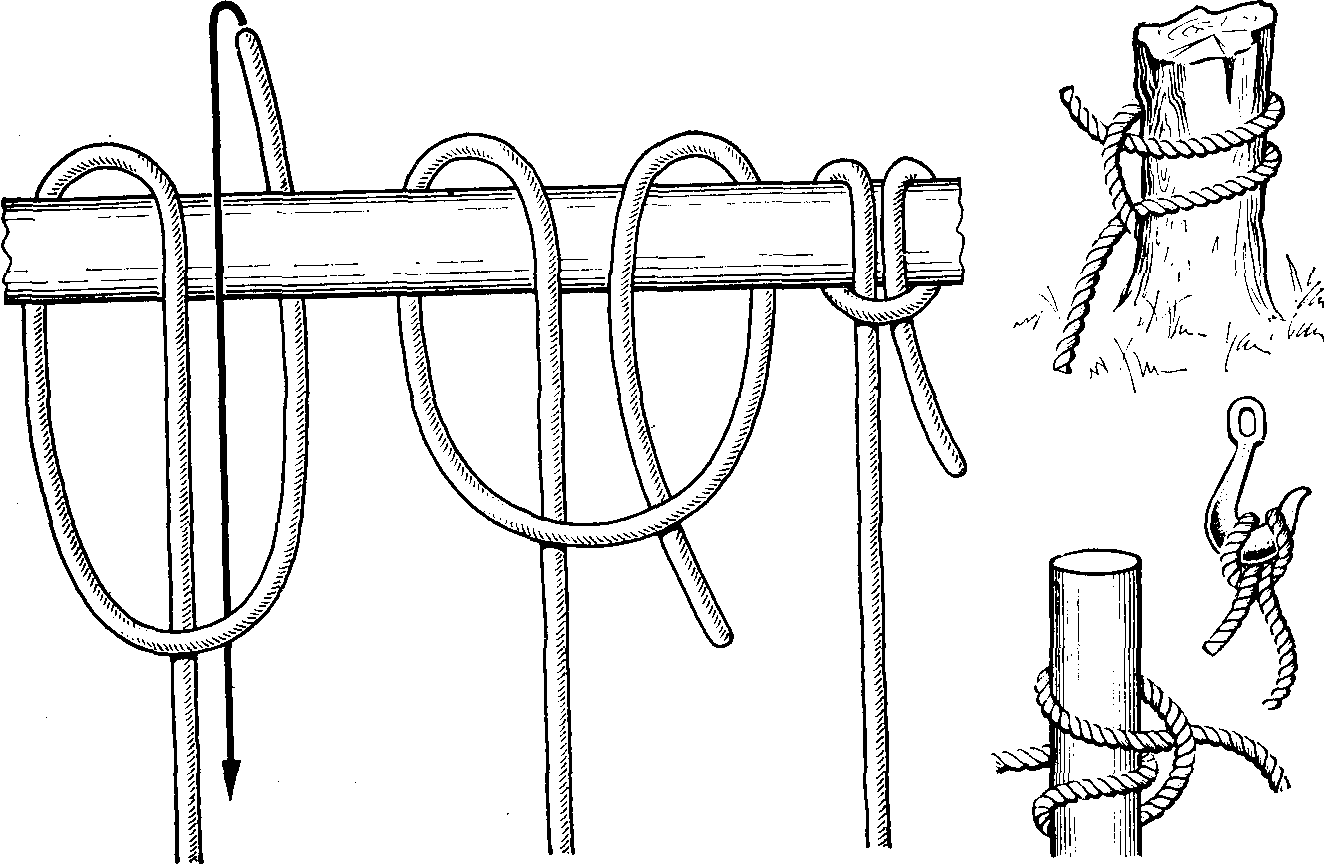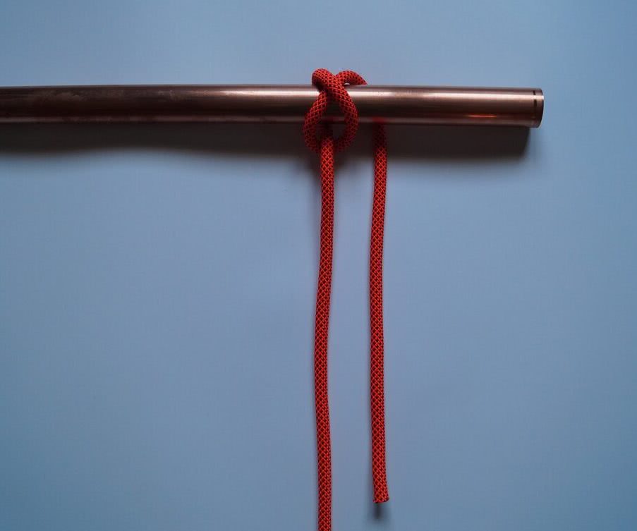 - На опоре завязать веревку любым узелком, который можно быстро развязать.