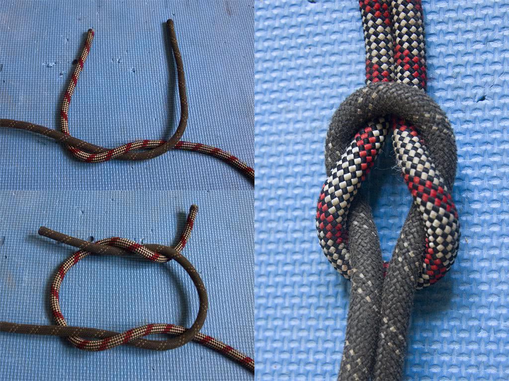 Простой узел. Самый простой и не требующий навыков. Его плотность напрямую зависит от силы тяги. Для того чтобы узел был постоянно натянут, необходимо прикладывать беспрерывные усилия.