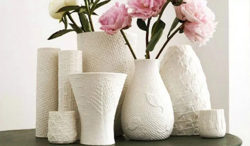 Гипс разводят водой. Раствор кладут на плоскость круглой формы. Посередине основания для вазы из гипса устанавливают бутылку, наносят на ее поверхность смесь (до горлышка) и заматывают марлей