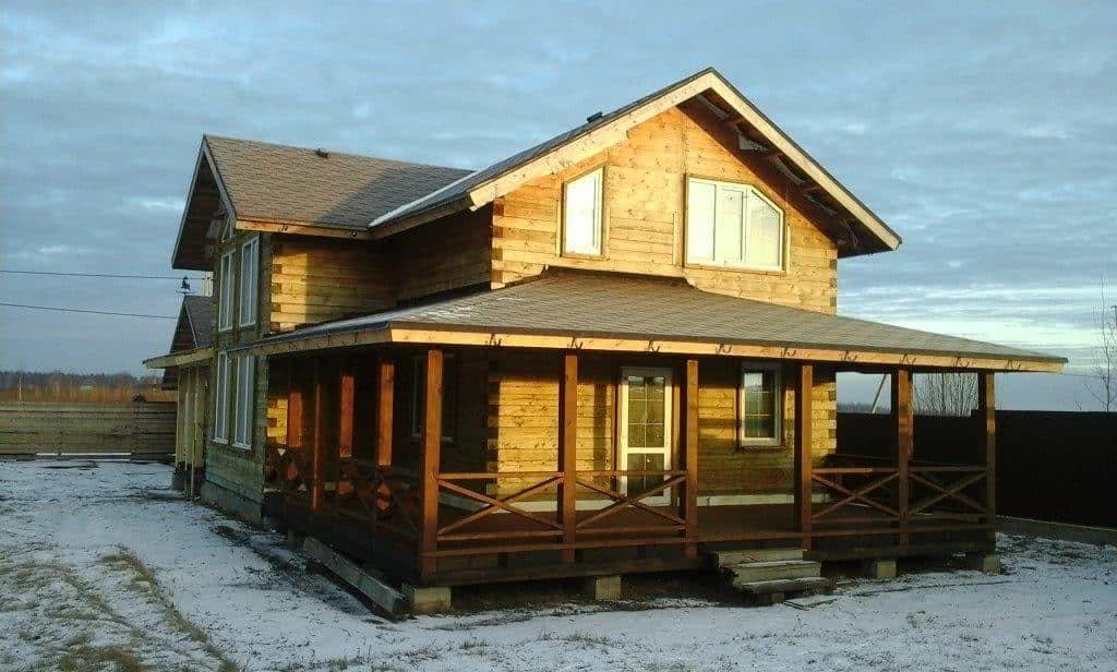 Важно! Специалисты рекомендуют пристраивать веранды к домам из бруса только после того, как закончились усадочные процессы. Это обычно занимает от двух до трех лет