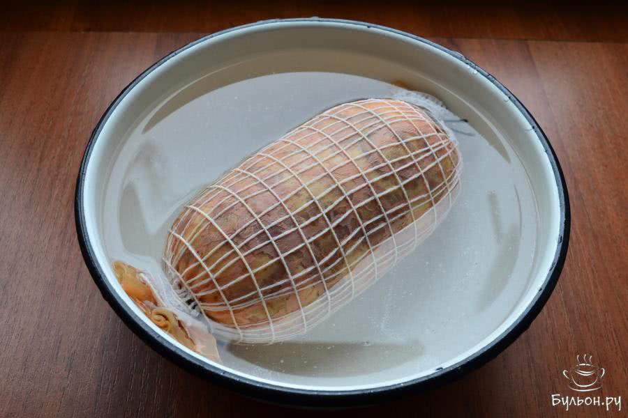 - Обдать ветчину холодной водой, дать остыть и убрать в холодильник на сутки.