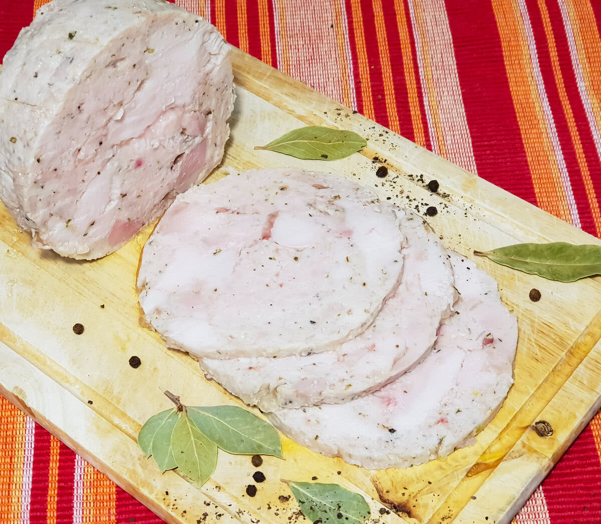 Домашняя ветчина из индейки и курицы в ветчиннице
