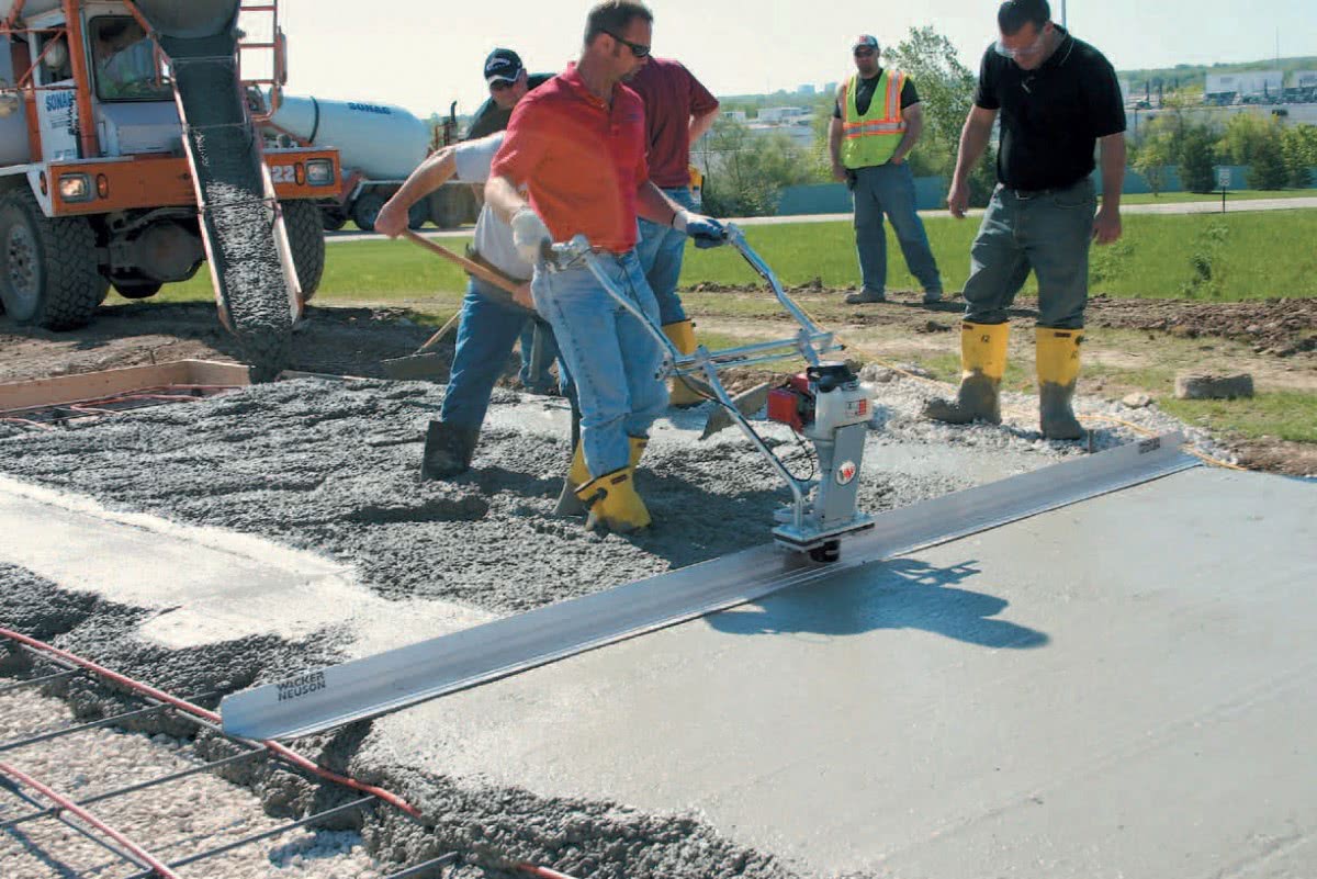 Порядок работы с виброрейкой. Виброрейка — оборудование, используемое для выравнивания и уплотнения бетонных поверхностей. В большинстве случаев итоговое качество покрытия напрямую зависит от того, насколько правильно работал с ней специалист. Помимо самого завершения работы, нужно и правильно ухаживать за инструментом – если вы не удалите бетонный раствор своевременно, то в дальнейшем в процессе удаления вы можете повредить виброрейку – не допускайте застывания раствора на поверхности инструмента