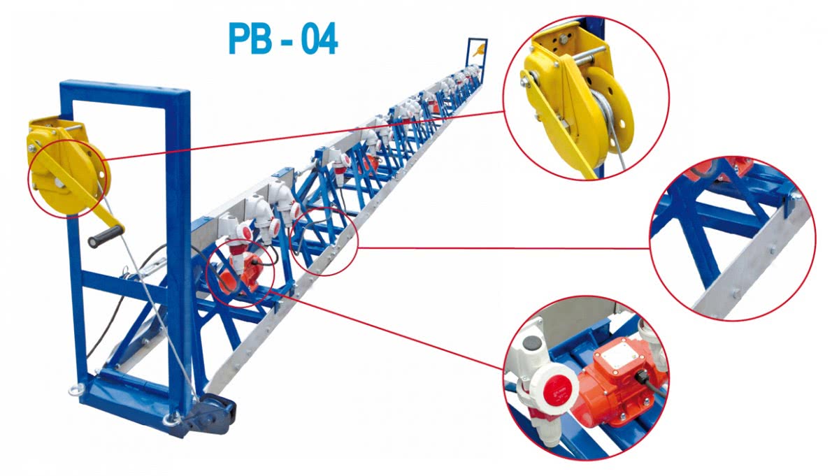 - оборудование, которое перемещается по предварительно установленным направляющим. Отличается повышенной длиной рабочего органа, которая составляет более 6 метров. Характеризуется повышенной производительностью и может комплектоваться рабочим органом различной длины. Виброуплотнение бетона при этом достигает 30 см.
