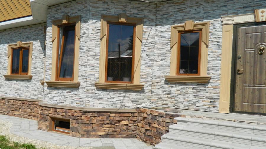 Выразительным способом внешней отделки здания является декоративный камень. Его художественные возможности очень велики — разнообразие форм, рисунков, фактуры и оттенков способно стать в умелых руках мощным изобразительным средством. Читайте здесь: Отмостка вокруг дома.
