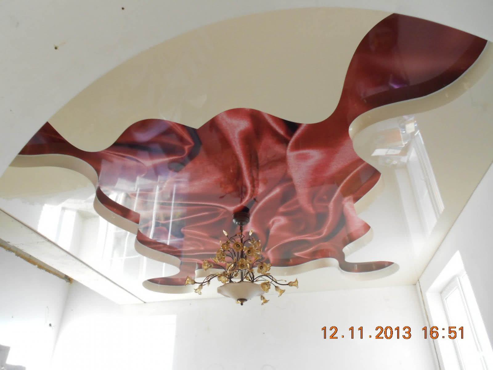- красный – полотно настолько яркого цвета, как правило, комбинируется с белой гипсокартонной конструкцией. Обязательное условие – глянцевый блеск.