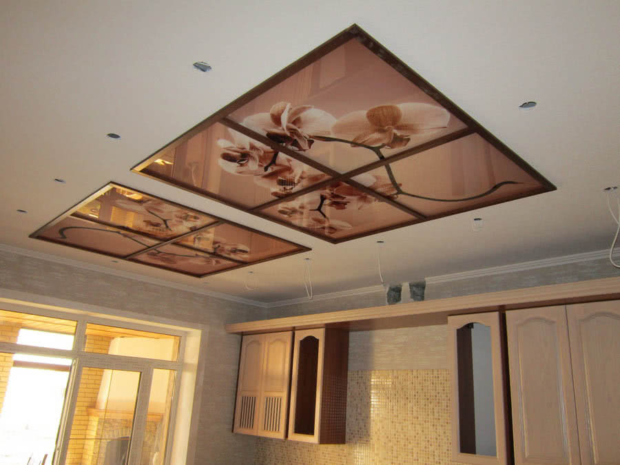 реалистичное изображение – в этом случае натяжное полотно, а чаще его фрагмент, воспроизводит реальный объект: трава и цветы на лугу, цветущие ветки яблони, небо с облаками. Обычно фрагмент с изображением комбинируют с однотонным полотном.