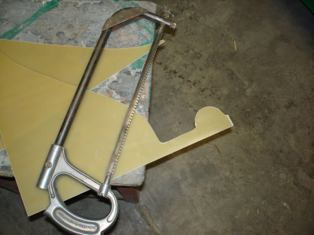 Из стеклопластика отпиливаем заготовку под лопатку-небольшой прямоугольник.