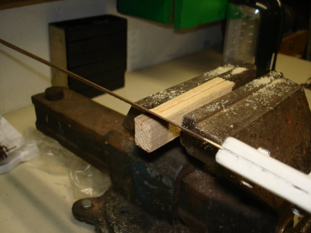 Далее в заготовках делаем продольный пропил под петлю и передний под лопатку.