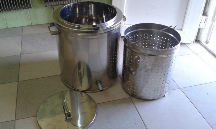 Соковарка тоже удовлетворяет требованиям к материалу воскотопки. Она отличается простотой конструкции и легкостью применения.