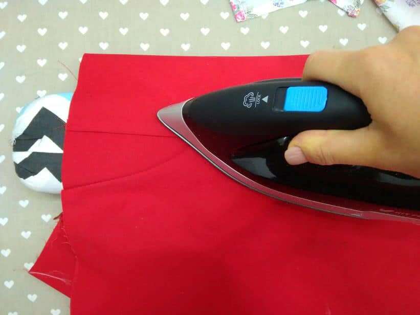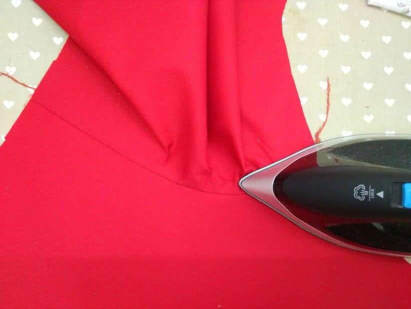 Проученные швы на полочку заутюживаются. Естественно, что срезы при этом также обметываются.