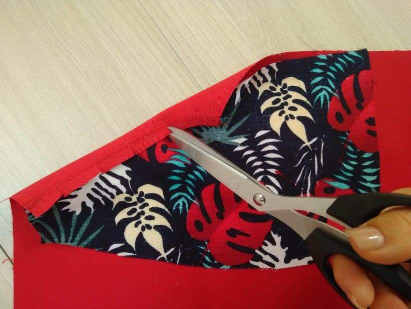 С интервалом в 4 см с помощью острия ножниц по припуску делаются рассечки. Они не должны доходить до строчки на миллиметр.