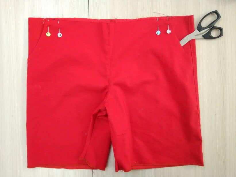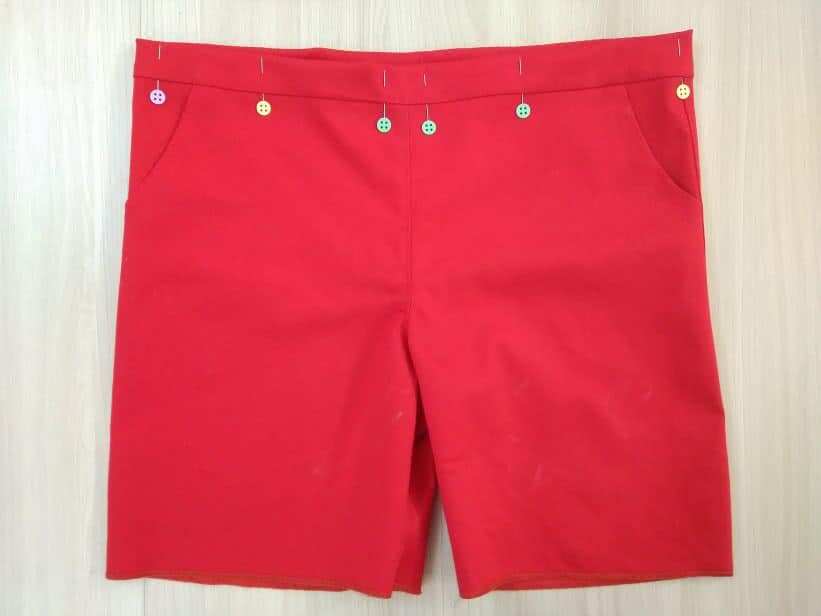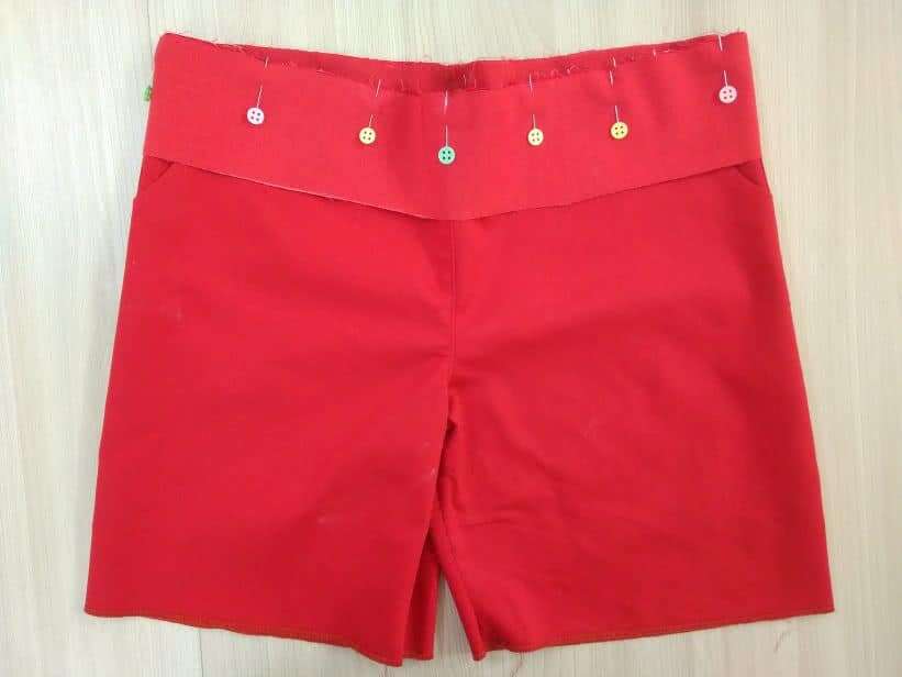 Пояс накладывается на будущие шорты и также скрепляется с помощью булавок.