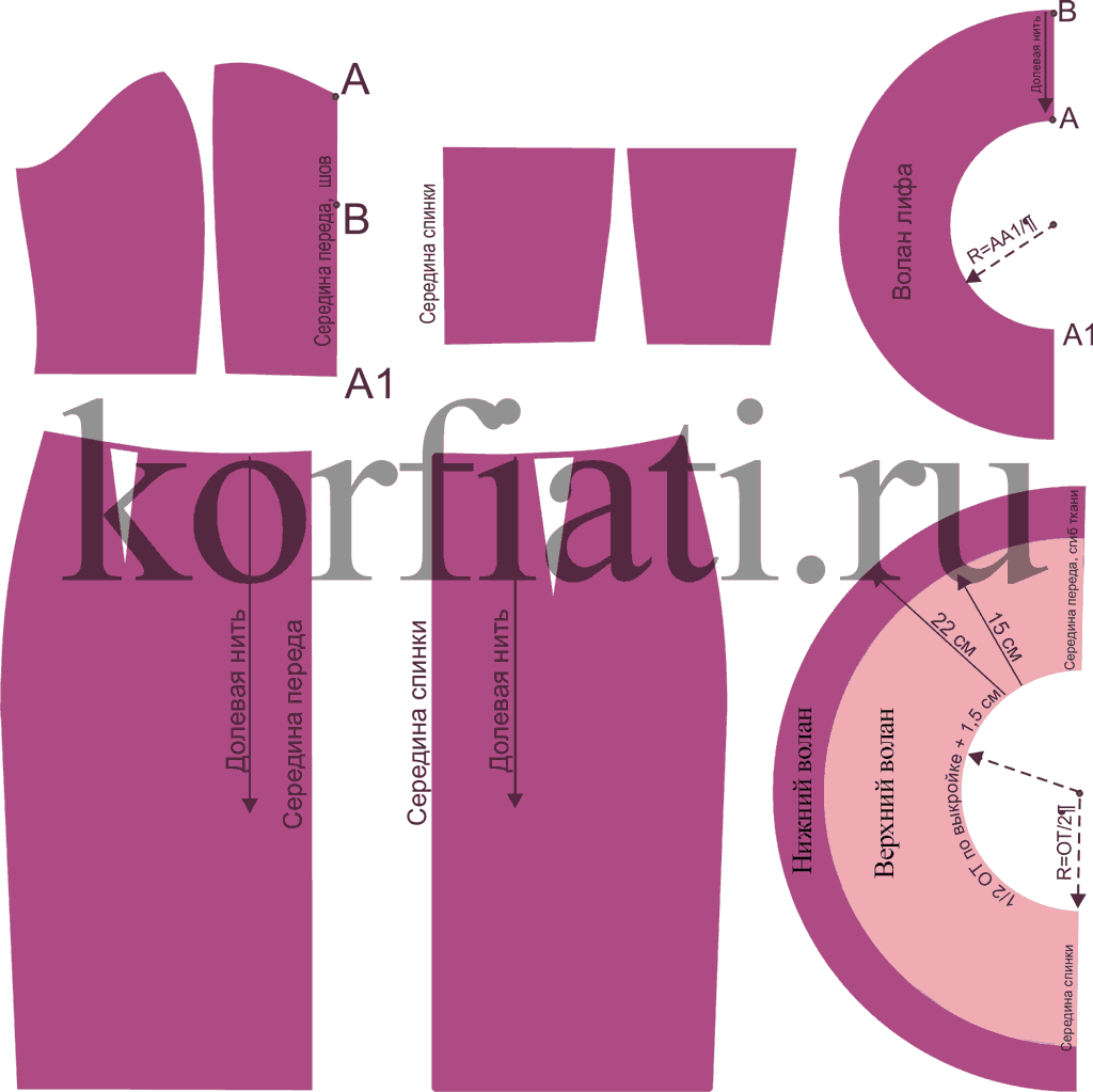 Выкройка платья с воланами