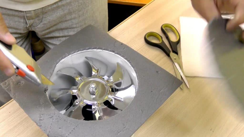 Самодельная вытяжка для кухни может изготавливаться из вентилятора, вмонтированного в стену. Для этого необходимо: