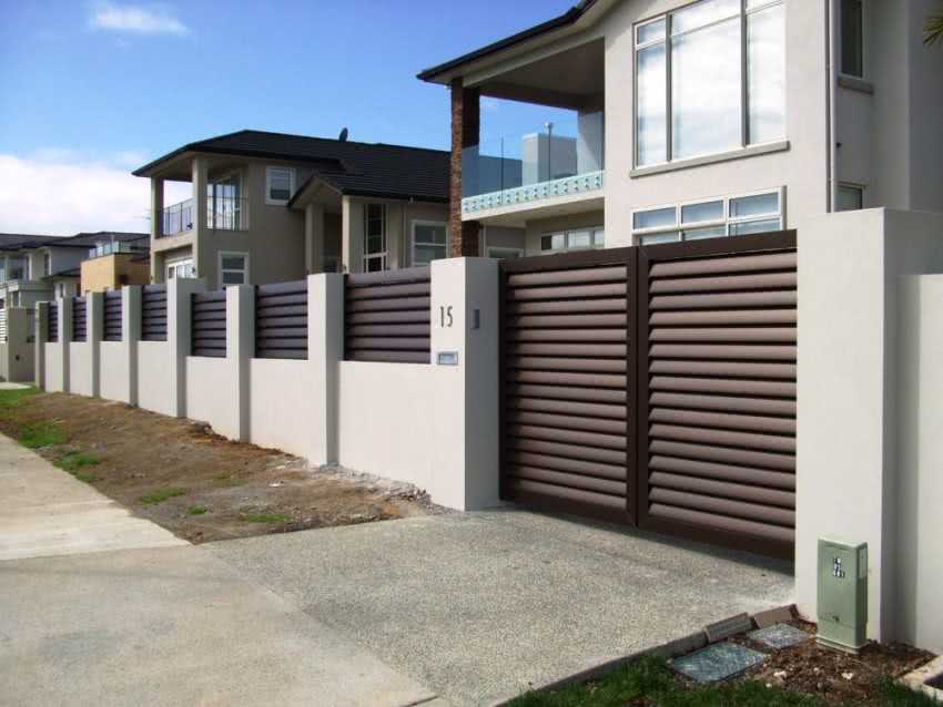 В первом случае появляется возможность коррекции участка (зрительной). Горизонтальные пластины обеспечивают не такую хорошую звукоизоляцию, как вертикальные. Забор с такими ламелями пропускает воздух и способствует вентиляции участка. Что касается ограждений, в которых рейки расположены вертикально, то они лучше защищают от звука. Серьезных различий между горизонтальным забором-жалюзи и вертикальным ограждением нет.