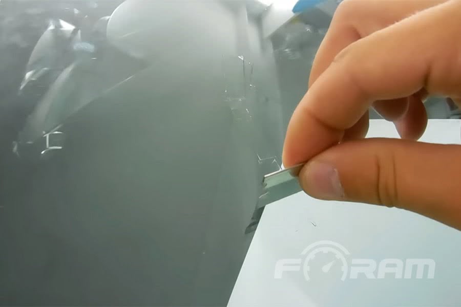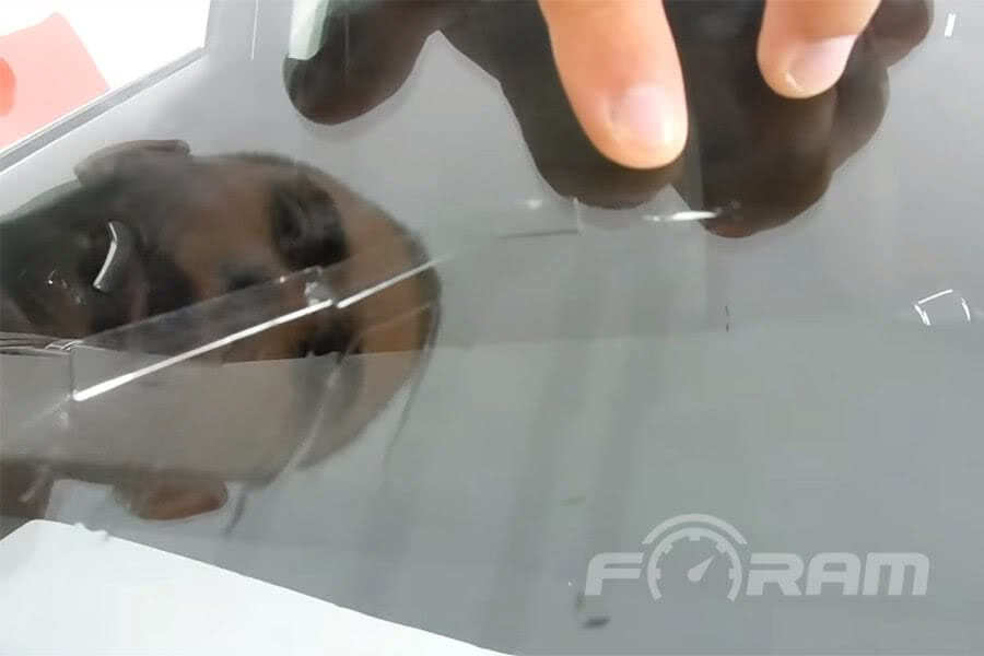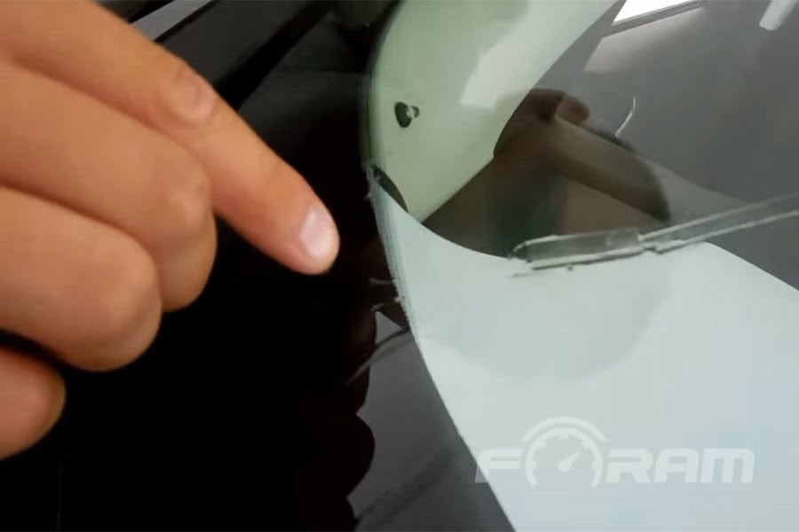 - На поверхность дефектного участка стекла приложить пленку и аккуратно разровнять. Излишки клея удаляйте сразу чистой салфеткой.