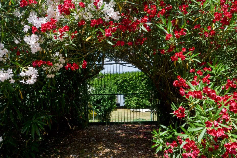 Выделение зоны отдыха кустами и шпалерой с вющимися растениями