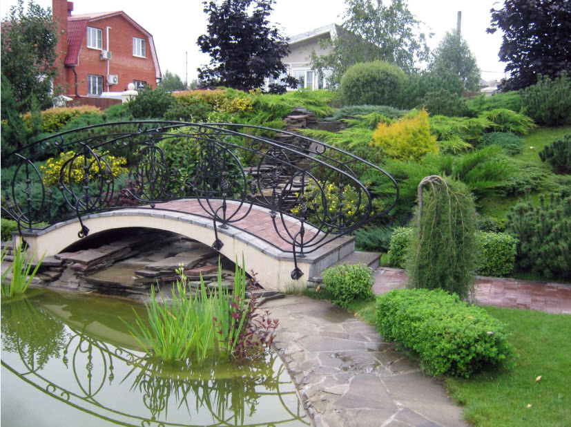 На необычных участках, на которых есть искусственный прудик или небольшой лес, то в этих местах дорожки можно выложить из необычного материала, необычной формы.