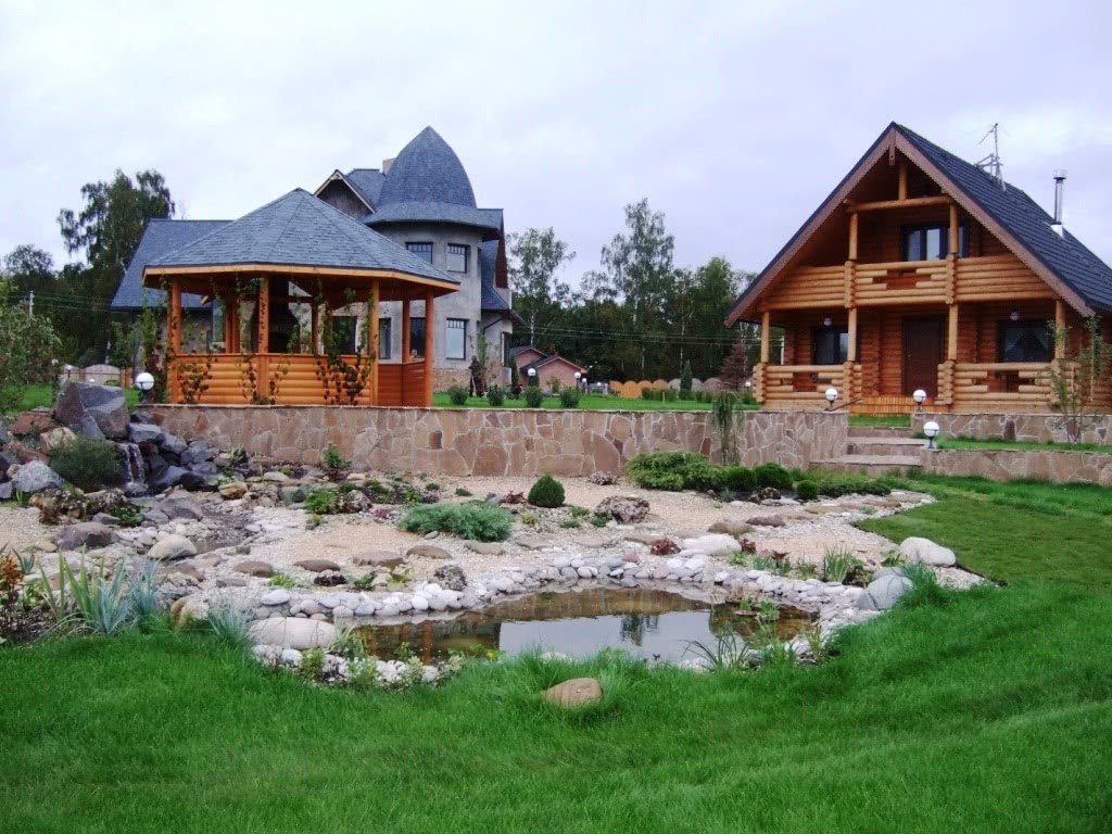 Как видите, здесь есть всё, что нужно для полноценного загородного релакса: и мангал, и места для отдыха под навесом, и даже небольшой прудик. Ну не чудо ли?