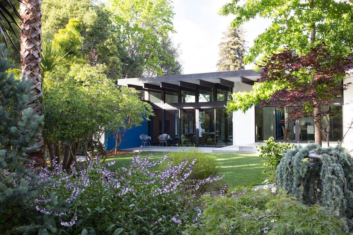 А вот вариант с тропическими лиственными растениями во дворе таунхауса.