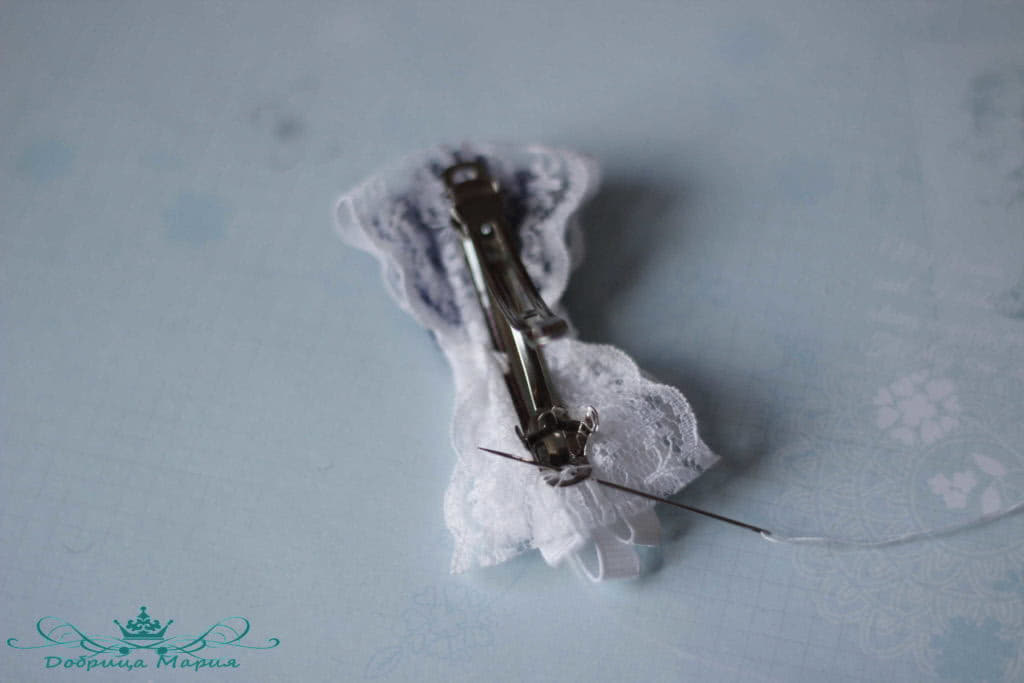 Берем заколку автомат и пришиваем.