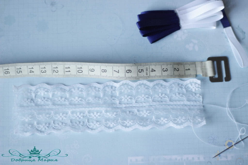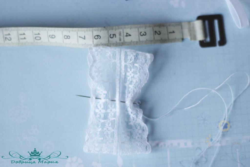 Для нижний части банта понадобится отрезок кружева 4 см. шириной и 15,5 длиной.