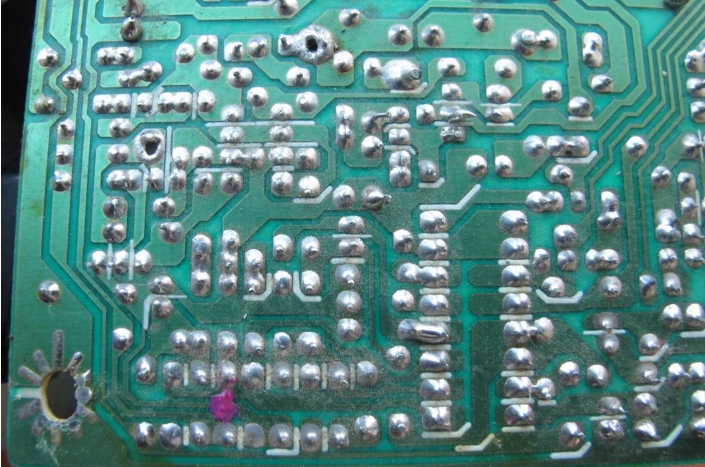 Длинную ножку конденсатора C1 (+) необходимо разместить на самой левой полосе из трёх полос. Короткую ножку необходимо припаять на среднюю полосу.