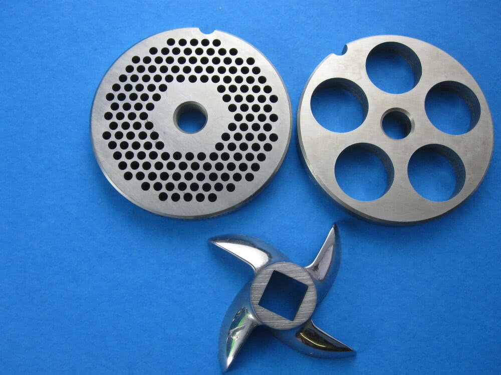 Несмотря на процесс усовершенствования мясорубок, любая из моделей оснащена плоским неподвижным ножом с множеством сквозных отверстий (в инструкции по эксплуатации его еще называют сеткой или решеткой) и ножом, по форме напоминающим винт, который имеет четыре лопасти.