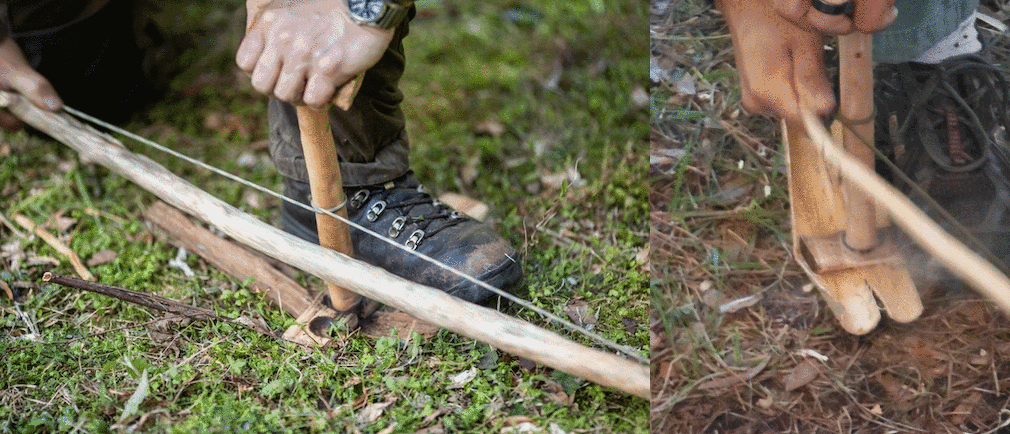 Более сложное в сооружении, но лучшее приспособление для добычи огня посредством трения. Использование лука – самый эффективный метод добыть тепло без спичек. Приспособление позволяет работать с хорошей скоростью и нужным давлением, чтобы создать достаточное трение для разжигания пламени. Помимо веретена и доски, нужно будет еще подобрать опорный блок и изготовить самодельный примитивный лук.